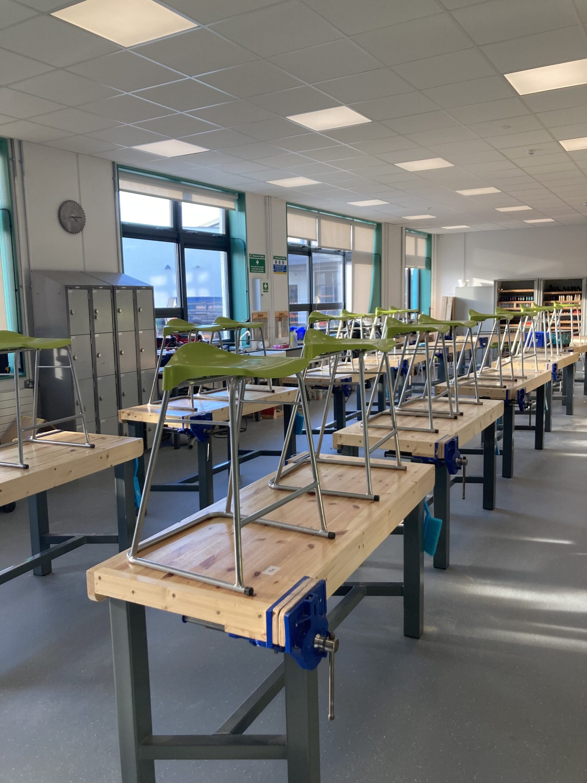 We also increased the height of the bench by 50mm this gives the students more legroom clearance under the bench. This also means that the students can use standard 600mm high stools.