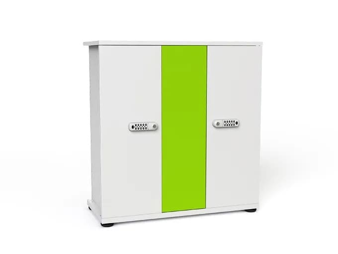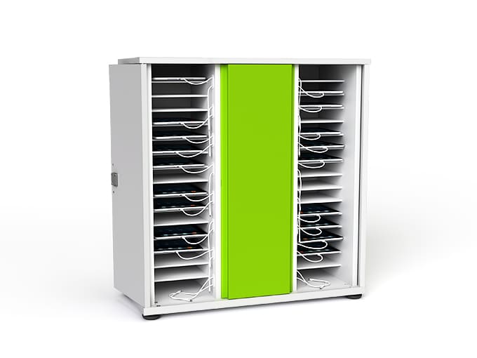 The Big Grips trolley by zioxi provides iPad charging and secure storage for 20 iPads in Big Grips Frames with their Big Grips Stands. Handle cut outs to help you steer if you want to move it. Lockable doors and on lockable castors. Doors fold back 270 degrees for easy access. Also available in a Charge & Sync version, as a floor standing cupboard & with a choice of key, code or RFID access card locks.