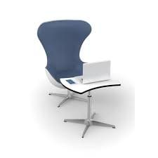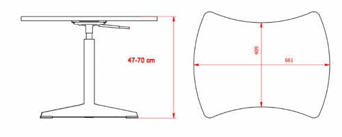 Keyhole shaped table with gas lift height adjustment from 47 – 70cm . Polished aluminium four star base with plastic glides.