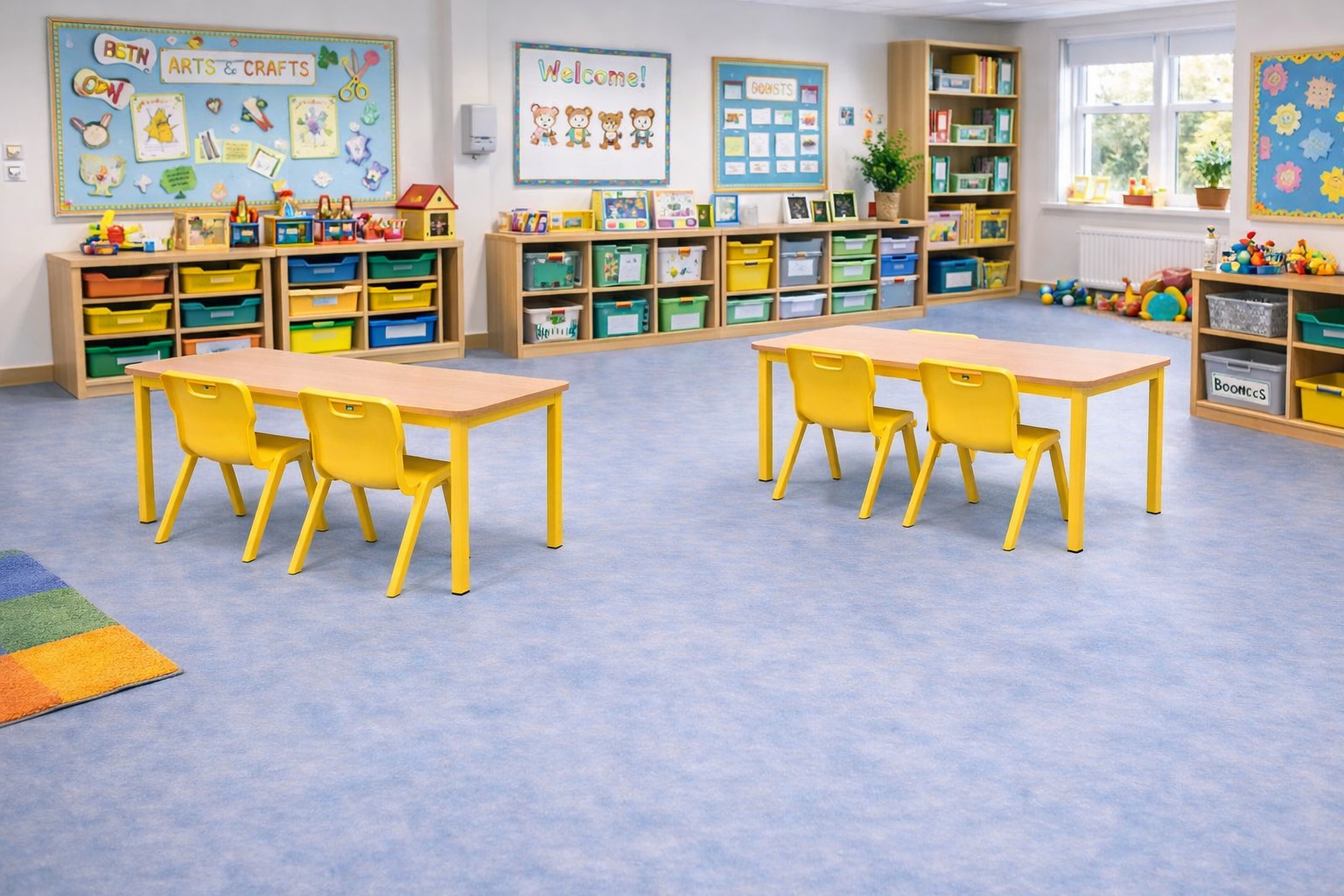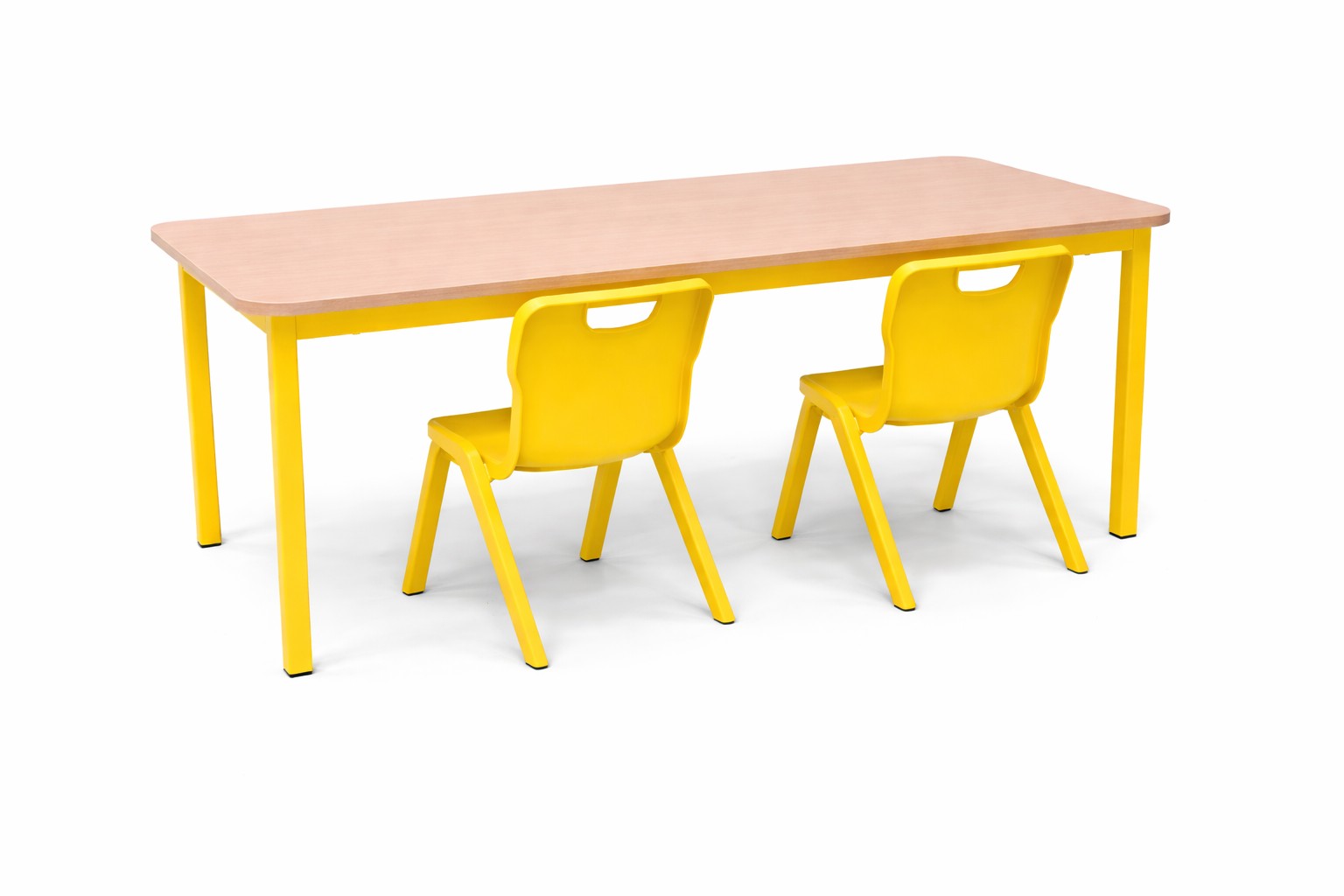 Traditional heavy duty classroom table with fully welded construction. Bullnosed polished table top edges aith radiused safety corner. High density plastic insert feet. Available in a wide range of colours of both frame and Top.