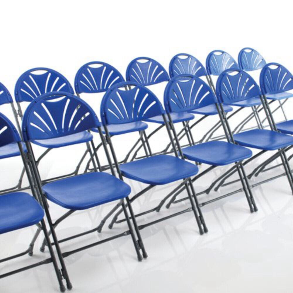 These tough lightweight and ultra-practical folding chairs are ideal choice for multi-seating areas. This fan back folding chair has the added advantage or a higher, enhanced contoured back offering increased levels of style and comfort for longer periods sitting up to 8 hours. These chairs can be linked together to form neat rows.