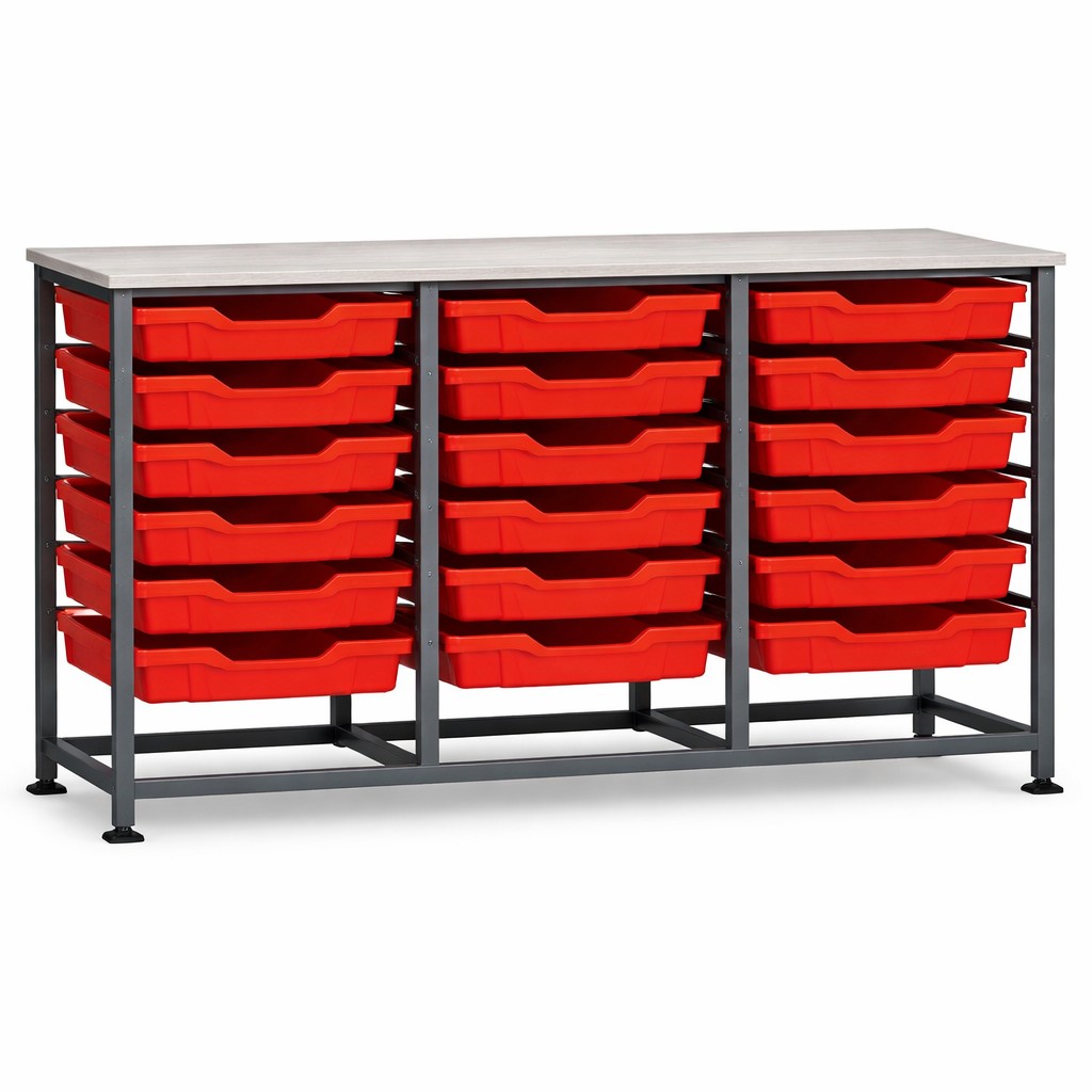 Our Treble Frames are a handy way to maximise space in a lab, classroom or prep room, adding extra storage designed to fit underneath any workbench or as a standalone unit. The frames are supplied with runners welded on, compatible with the full range of Gratnells trays. The perfect height to fit either underneath a workbench, these frames help to maximise any empty space in busy classrooms or labs and ensure that required equipment, chemicals or apparatus is readily at hand. Plus, with metal and wooden tops available to add, designed to slot on top, they can even double up as extra workbench space if required. Made from sturdy, powder coated steel,