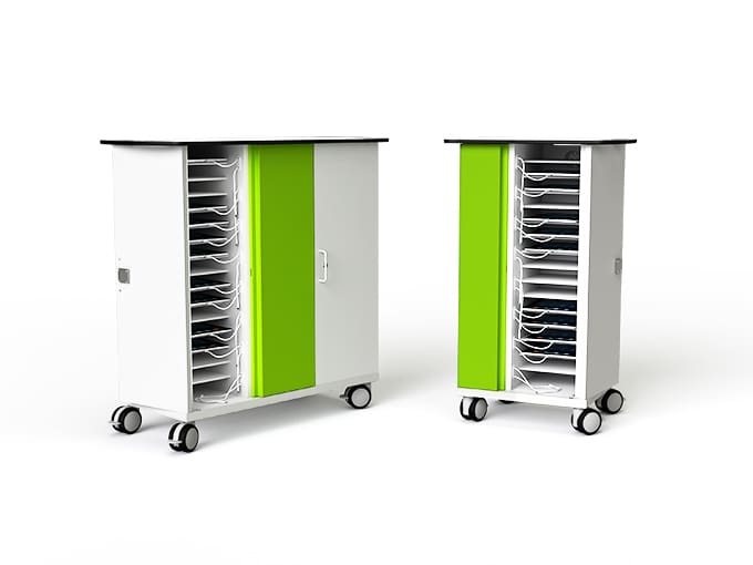 The zioxi iPad Trolleys provide the ability to charge & store 16, 20, 32 or 40 iPads and USB tablets – with cables presented and retained at the front of each shelf and all in a very compact, easily moved and unobtrusive unit.