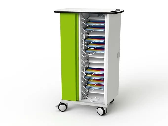 zioxi iPad trolleys provide charging, secure storage and easy transport for 16, 20, 32 or 40 iPads or tablets. The iPad charging trolley will charge iPads, iPad mini and most other tablets in all standard case designs using the mobile device chargers.