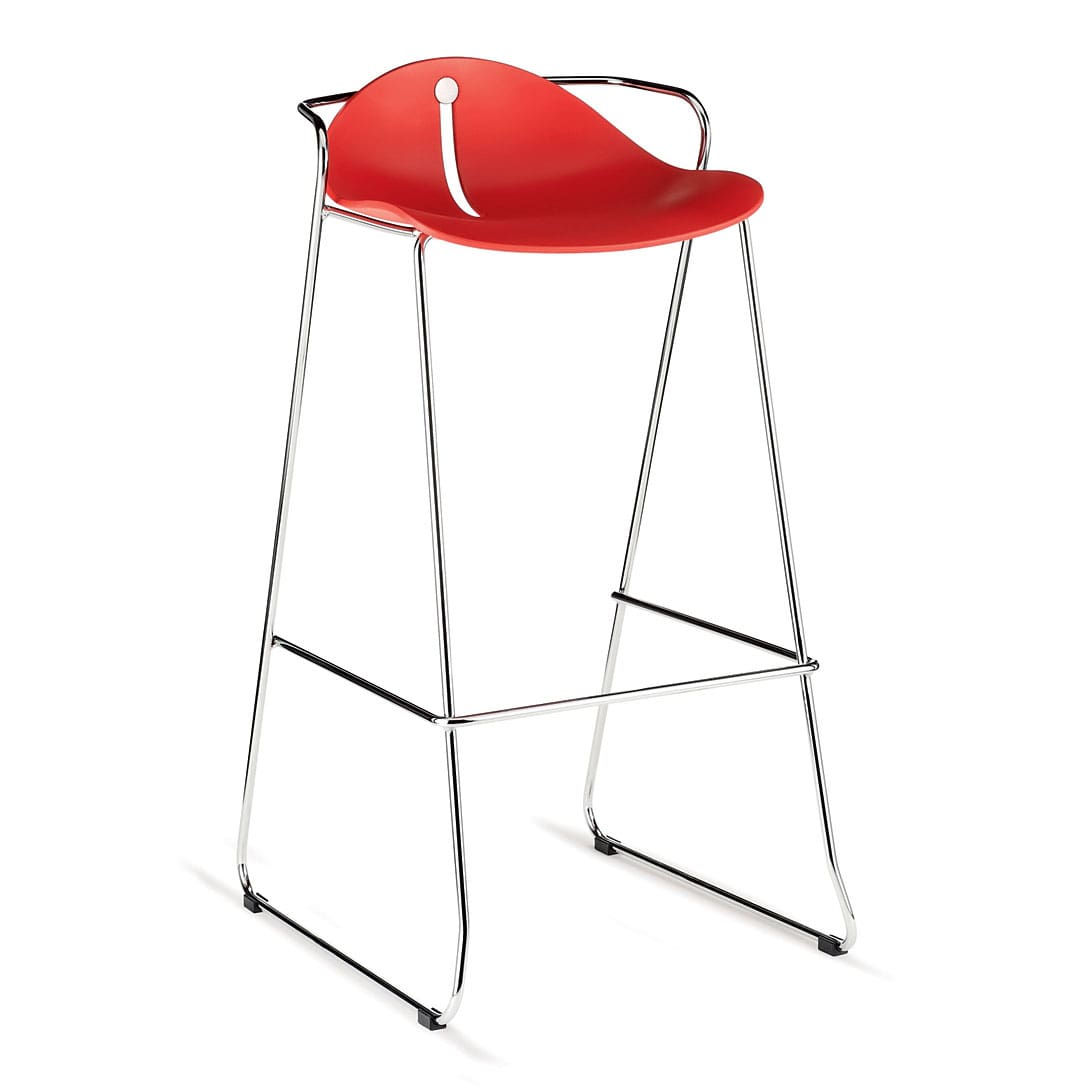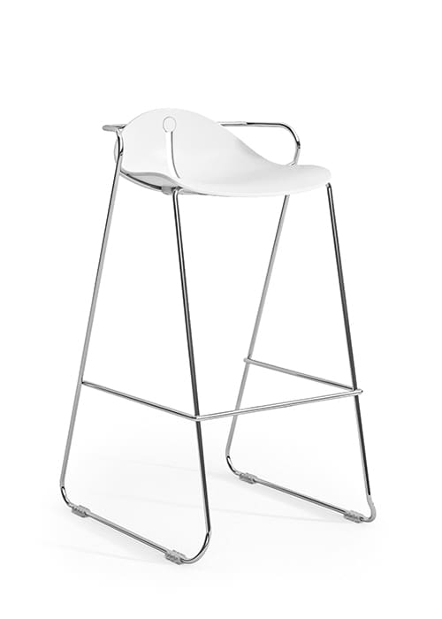 Mariquita Bar / Counter Stool utilises the low back version of the Mariquita seat; a generously shaped polypropylene shell with a thin profile and great strength. Mounted on a tall skid-base / sled frame, the seat is suitable for breakout and leisure applications.