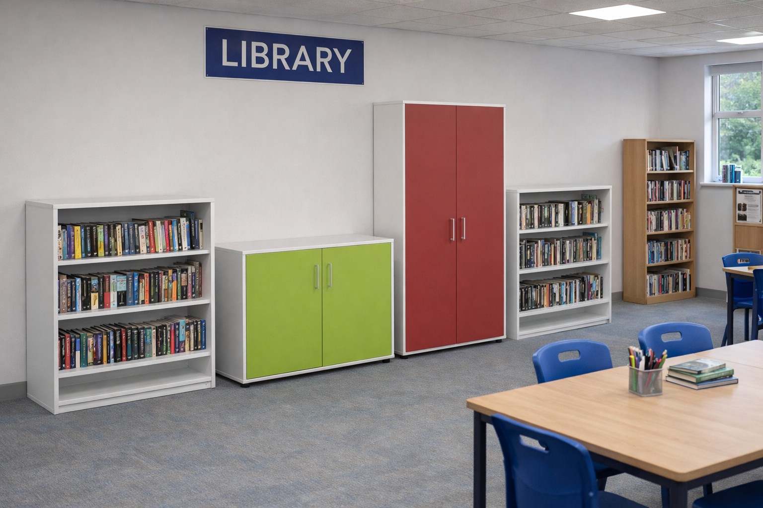 This mobile low cupboard is ideal for schools, providing secure, accessible storage for books, supplies, and equipment, with the added convenience of easy mobility to adapt to classroom or storage needs.