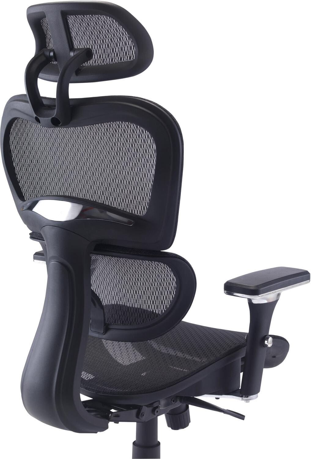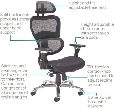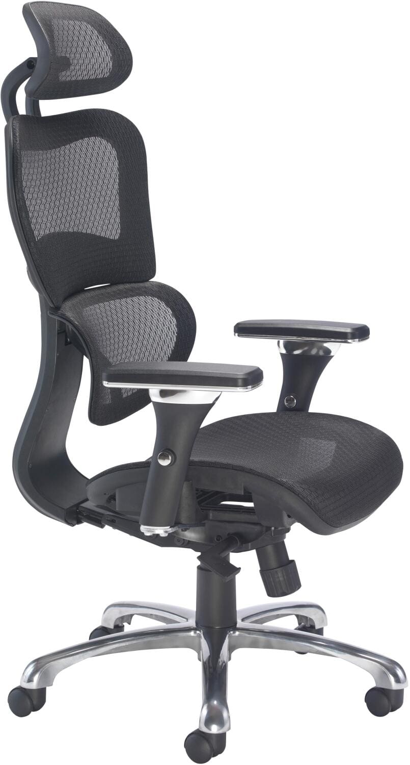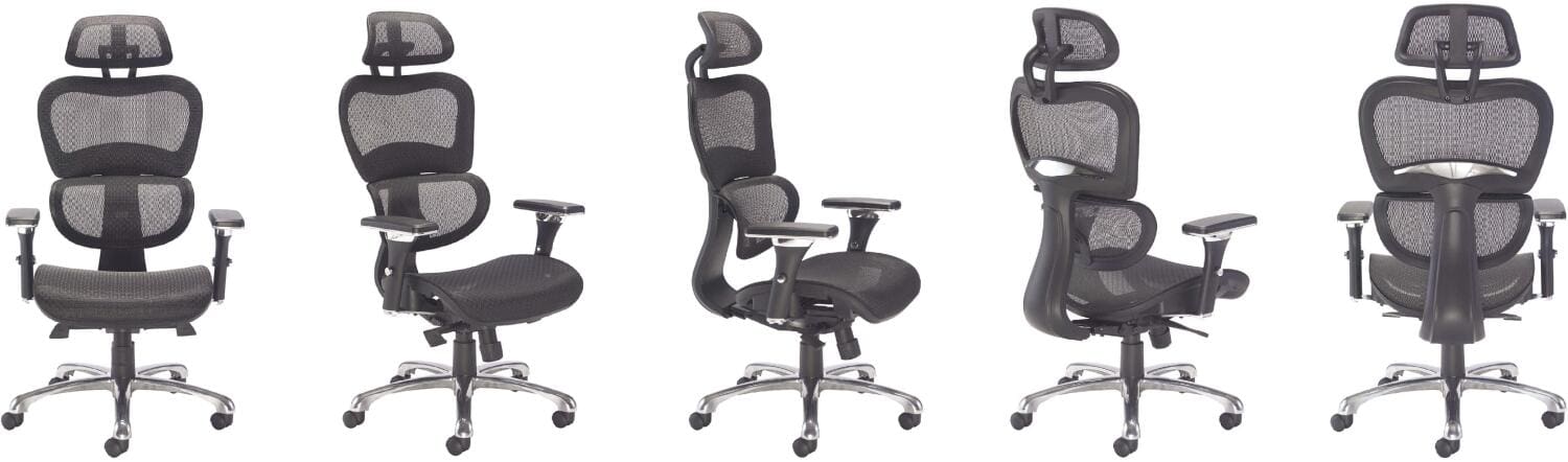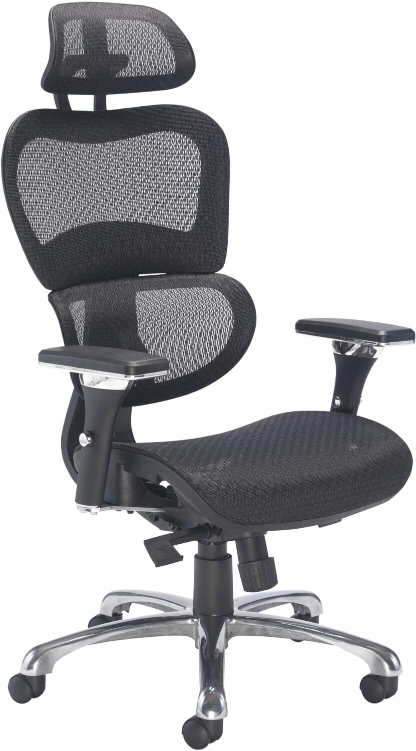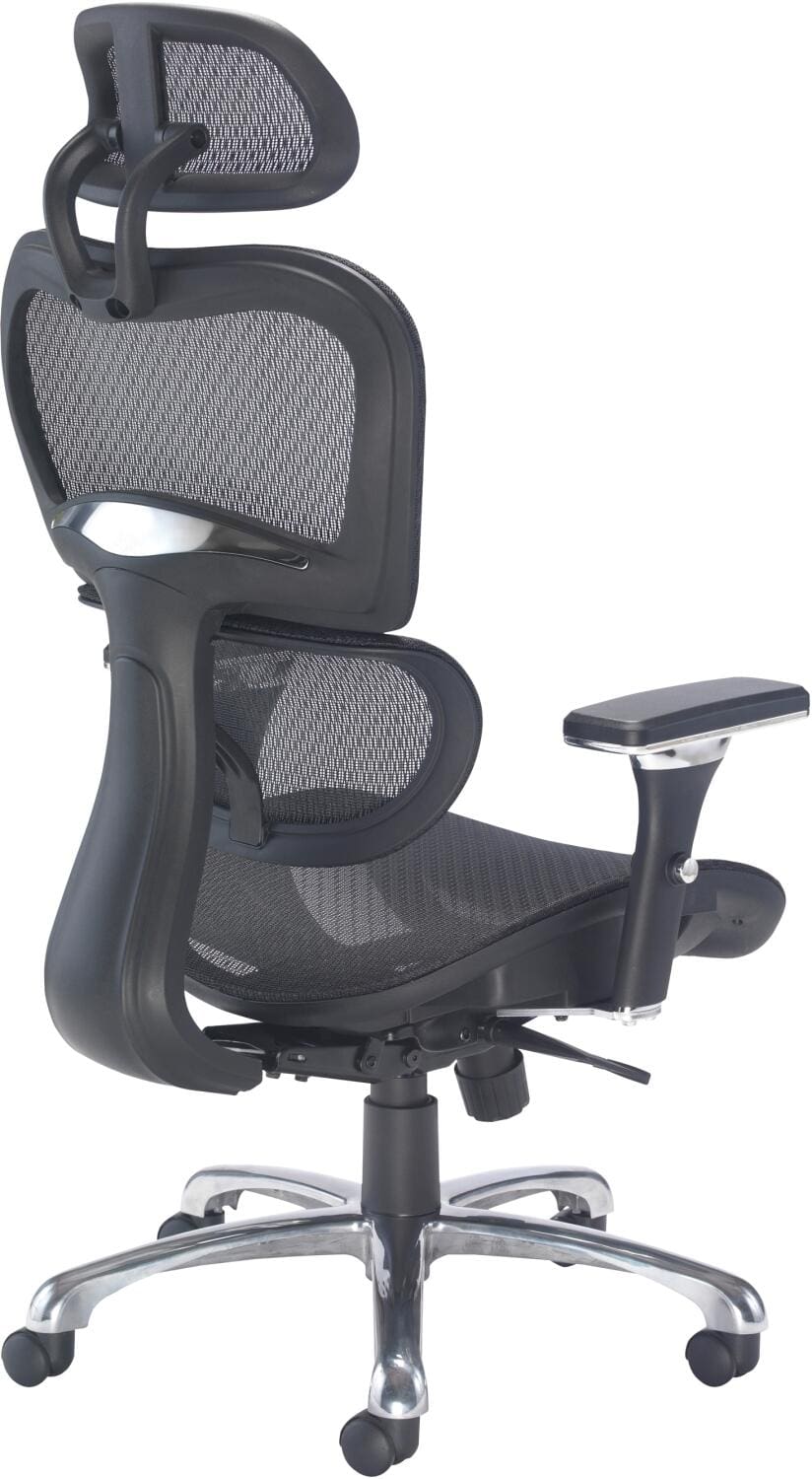 Mesh back and headrest provide ergonomic support