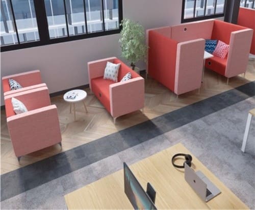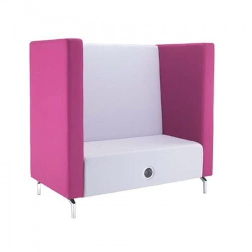 Our Phonic range includes a high back acoustic booth, with optional additional extras transforming it from a sofa into a multimedia enabled meeting space. With a fully welded chrome finished frame and optional power module accessory.