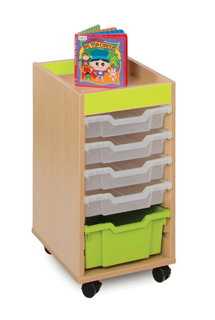 Our new Premium tray storage unit is a fun storage solution designed for use in schools, pre-schools and nurseries. Available with 6, 12, 18 and 24 school tray options. Great for adding a splash of colour to your early years’ learning environment. Each unit is supplied in Beech MFC with top shelf surround in 4 vibrant colours – red, blue, lime and white.