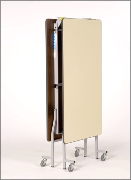 Rectangular LB tables roll into use for food service, meetings, conferences, studying, and testing with tremendous ease.