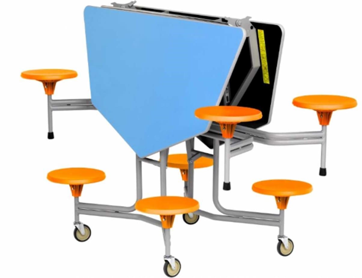 Tables with attached seats eliminate the noise of chairs moving around and banging together. They also eliminate aisle blockage and the ‘horseplay’ that can occur with chairs. With attached seating, floors retain their beauty longer and your staff spend less time maintaining them. The SICO EUROPE® Graduate is also very easy to handle. The units fold and roll easily, and nest together for compact storage.