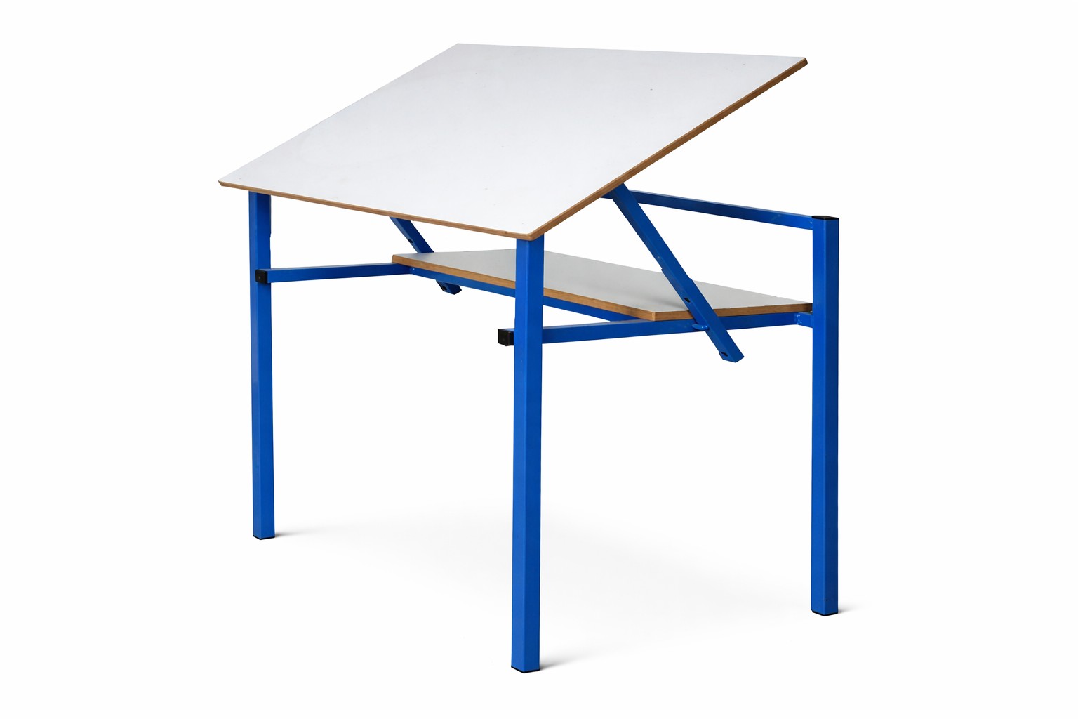 Single Student art table with adjustable top and shelf. Top can be adjusted to six different angles.Table is designed to be used with a standard classroom chair.Fully welded construction.All our Classroom Tables are manufactured in Ireland using highly skilled Irish craftsmen. We can alter any dimension to suit the customers specific needs. All our tables are plastic powder coated to any RAL or BS colour. 12 year framework guarantee.