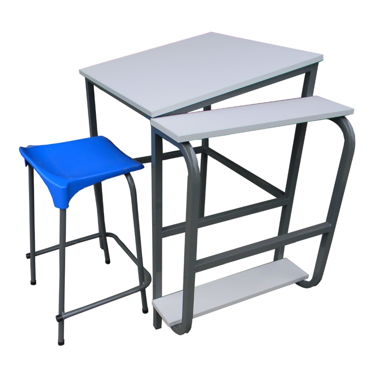 Single Student drawing table with sloped top and shelf. Table also includes a instrument shelf. Table is designed to be used with a 600mm high stool. Fully welded construction.All our Classroom Tables are manufactured in Ireland using highly skilled Irish craftsmen. We can alter any dimension to suit the customers specific needs. All our tables are plastic powder coated to any RAL or BS colour. 12 year framework guarantee.
