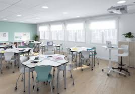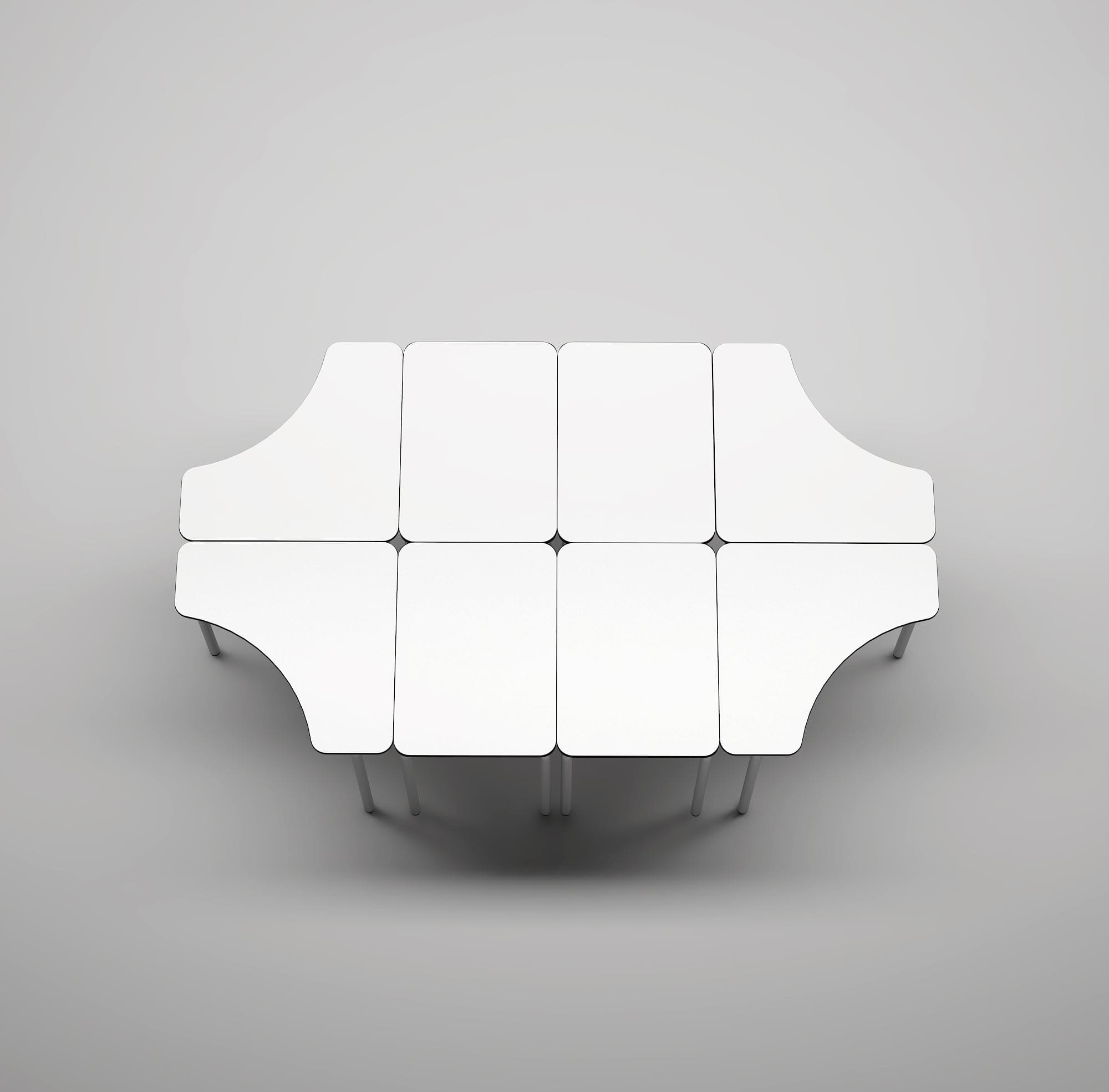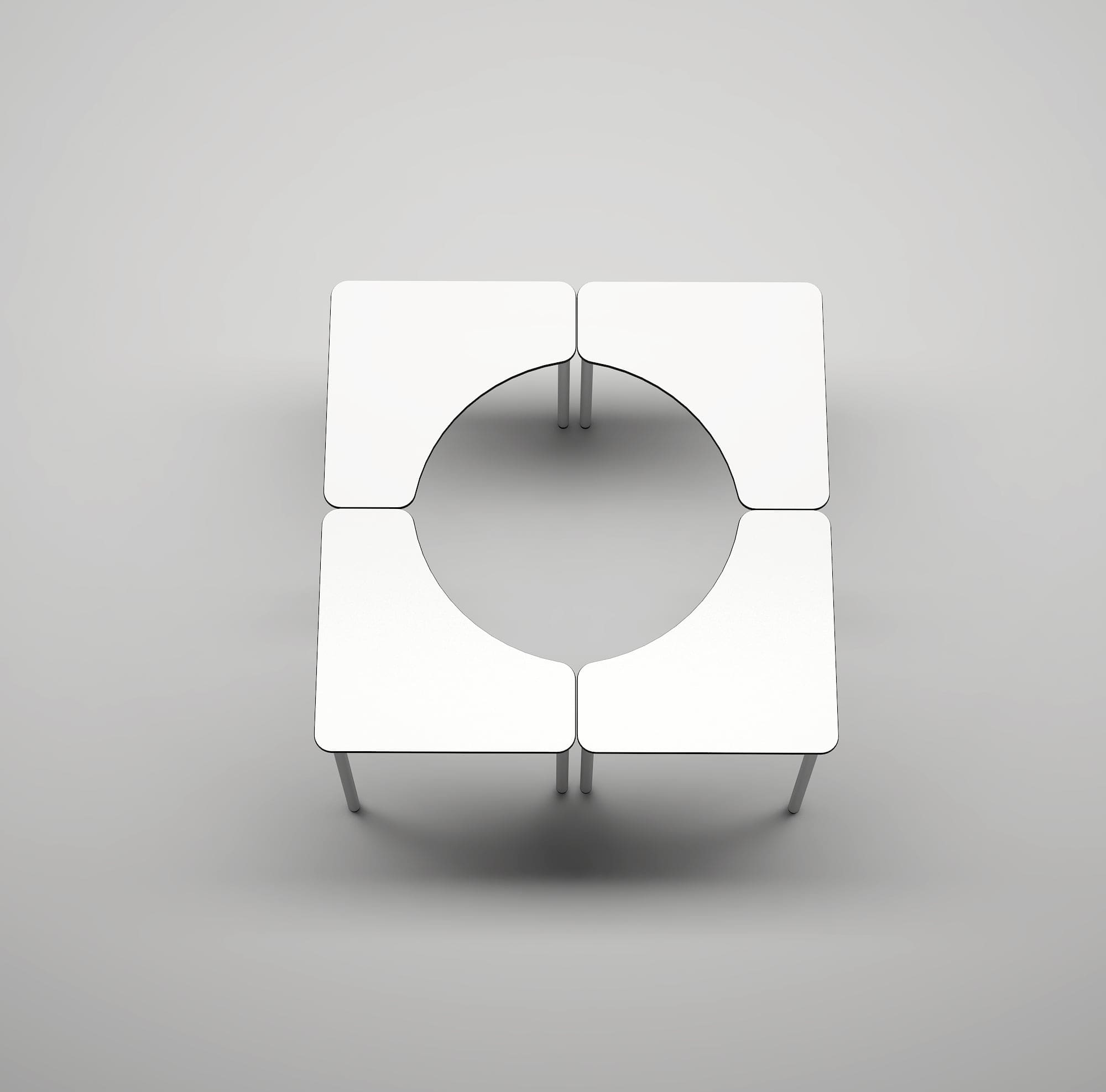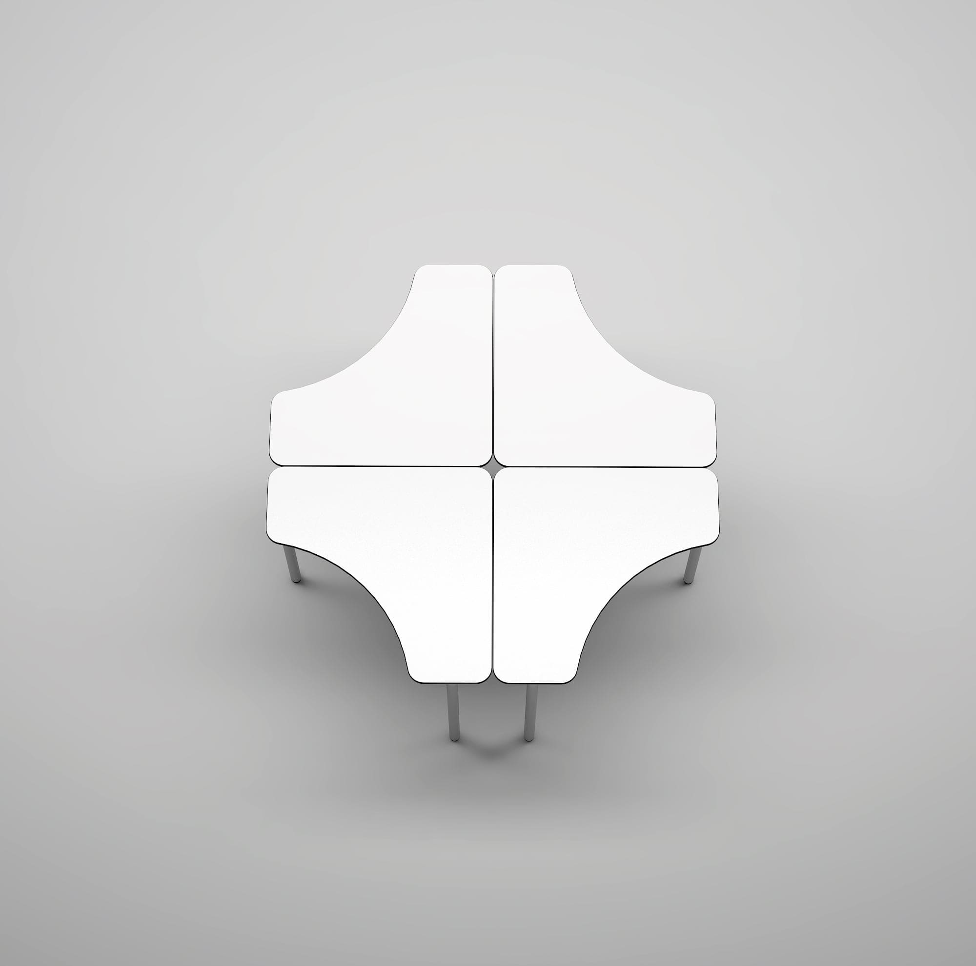 Individual school table with metal structure and white finish. In addition, the table is designed to equip cooperative learning classrooms as it allows different combinations to work in groups or individually.