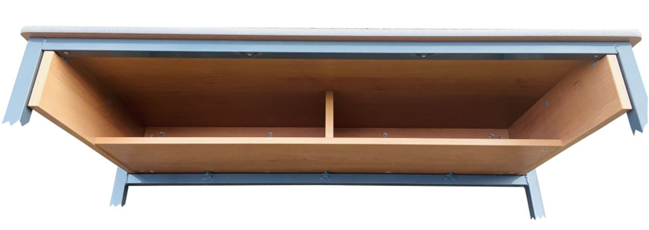 Box is fully intergrated into the desk. Unlike wire baskets students cannot remove screws.