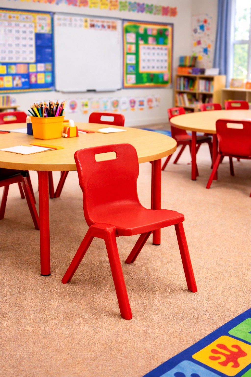 Made from durable polypropylene, this one piece chair provides excellent lumbar support for students, ensuring they can sit comfortably for extended periods of time. The anti-tilt feature also prevents falls, making it a safe choice for young learners. It’s stackable design makes it easy to store when not in use. Invest in the Titan One Piece Chair for a comfortable, safe, and stylish seating option for your students.