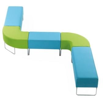 Urban Bench has connecting tables with low upholstered benches and coffee tables. The Urban Benches and connecting tables have been designed to allow customers flexibility in efficient use of space.