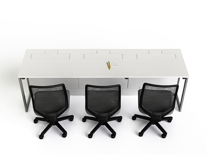 A choice of standard shapes and sizes including single, double & treble desks; benching desking with upto 6 PC stations, circular tables and even collaborative tables with integrated shared displays