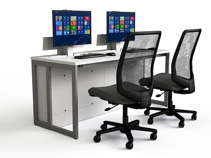 A choice of standard shapes and sizes including single, double & treble desks; benching desking with upto 6 PC stations, circular tables and even collaborative tables with integrated shared displays