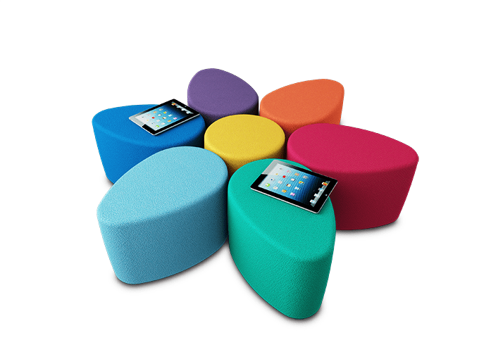 Lightweight, hard wearing, modular soft seating system that even young students can configure into lots of fun & colourful layouts